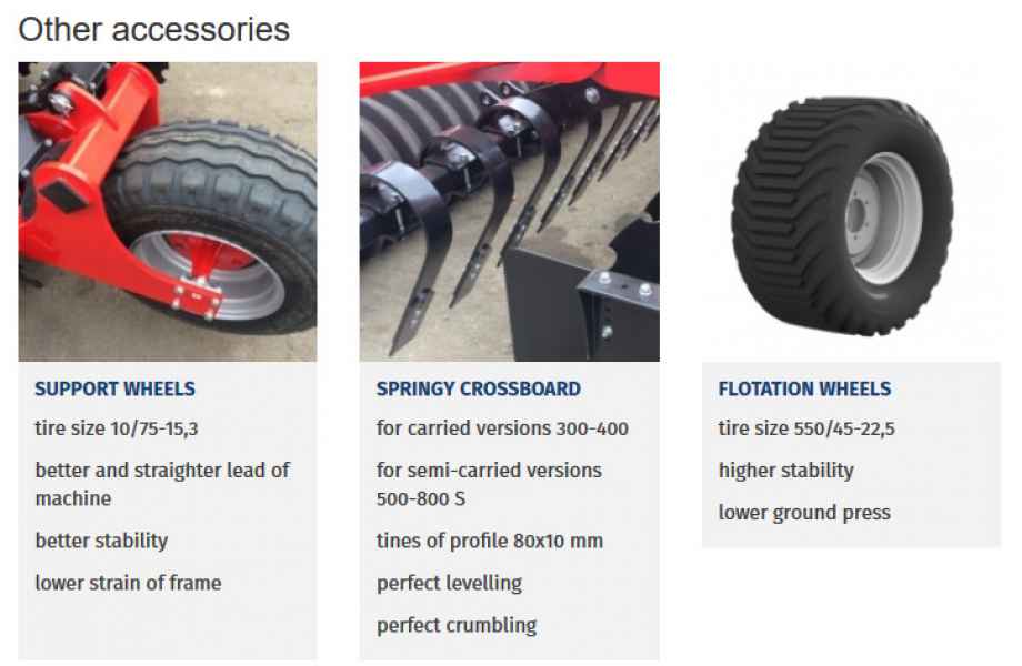 Utilajul este destinat pentru prelucrarea pământului după recoltare, în condiții mai puțin exigente, pentru pre-semănat, pregătirea solului și, de asemenea, pentru reînnoirea pajiștilor permanente. În dotarea de bază grapa este livrată cu tăvălugi tubulari, dar opțional poate fi dotată și cu alt tip de tăvălugi.